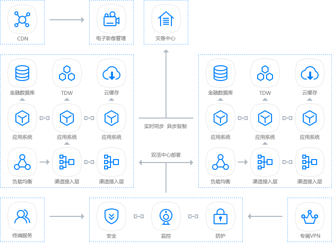 我们的金融解决方案采用分布式架构设计,通过多层级的服务节点部署,实现全渠道的金融业务运营。系统包含: